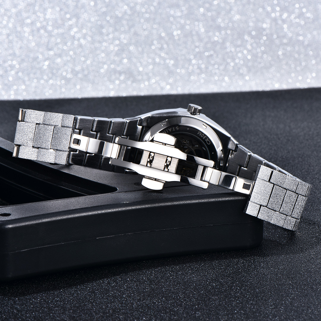Material: stainless steel construction, Strengthened Glass Mirror, and top BY-9020 automatic movement