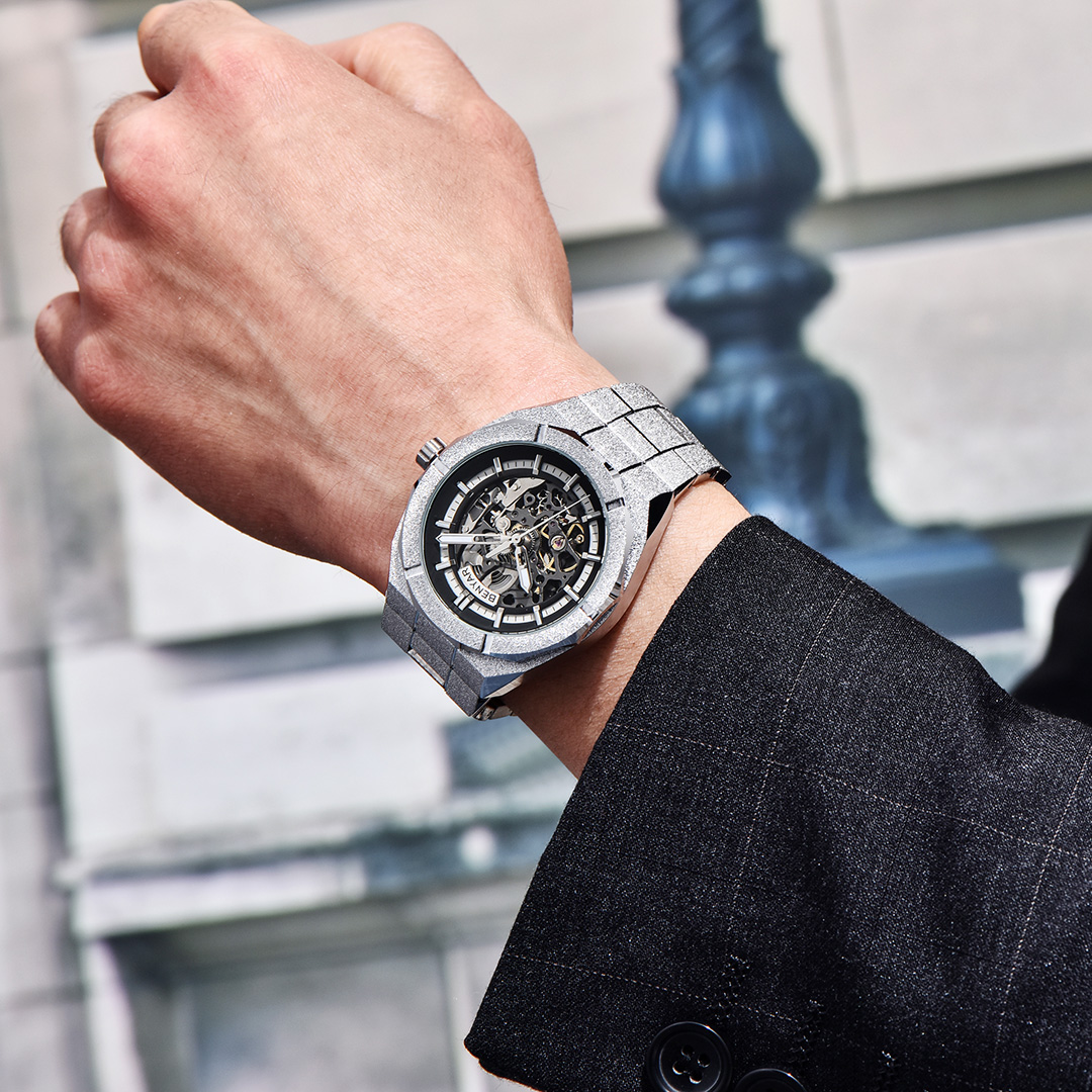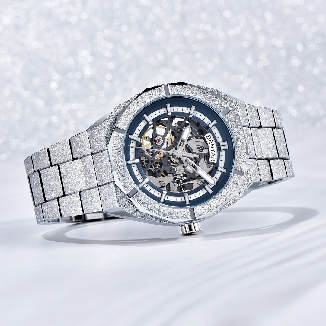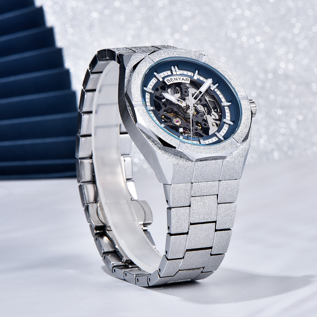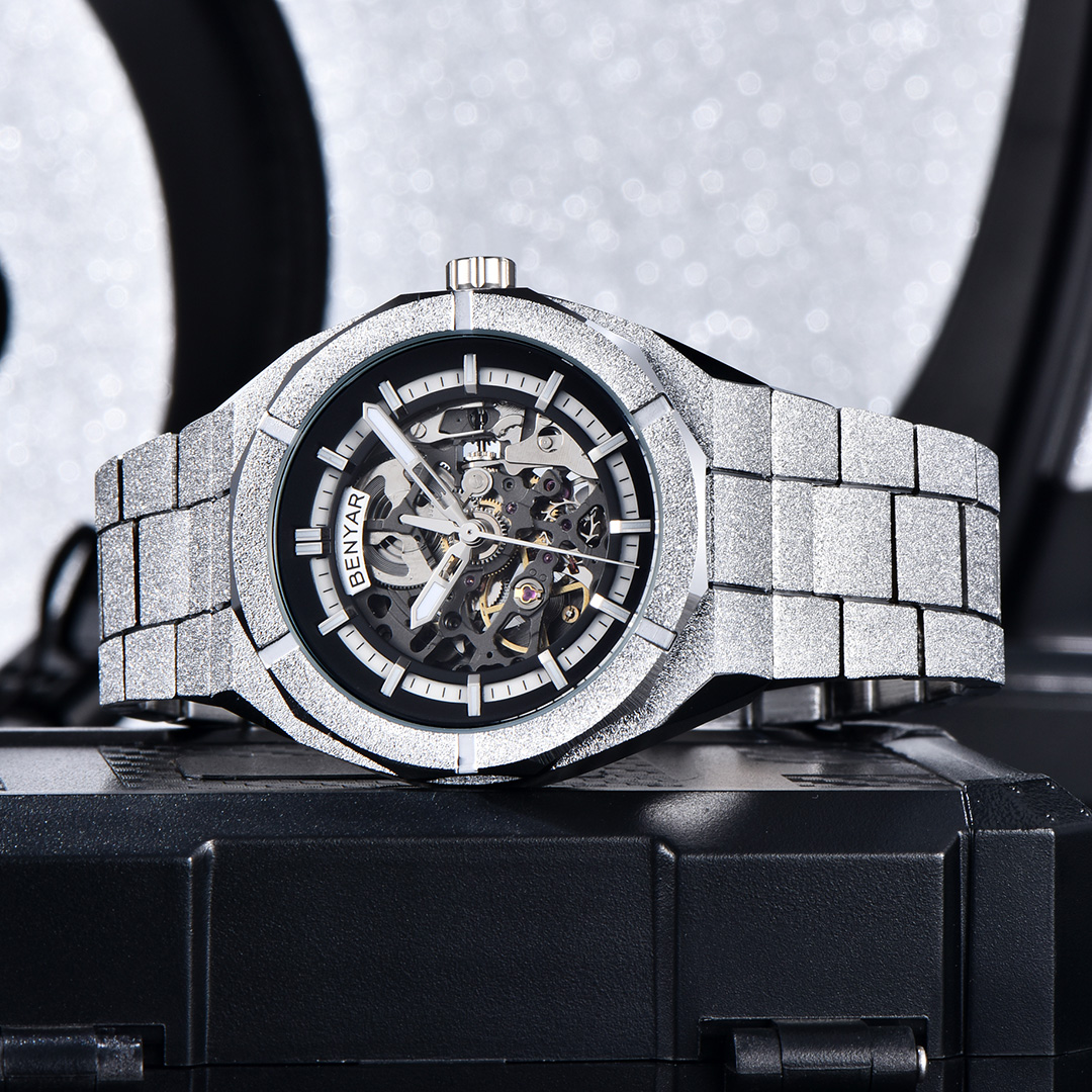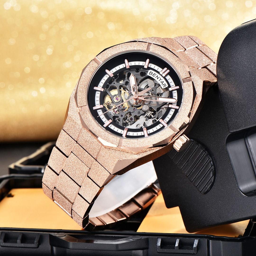 BENYAR BY-5212M Men's Automatic Watches Unique Skeleton Steel Mechanical Wrist Watch for Men, Shining Versions, Rose Gold Timepieces