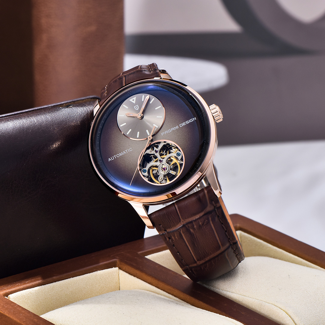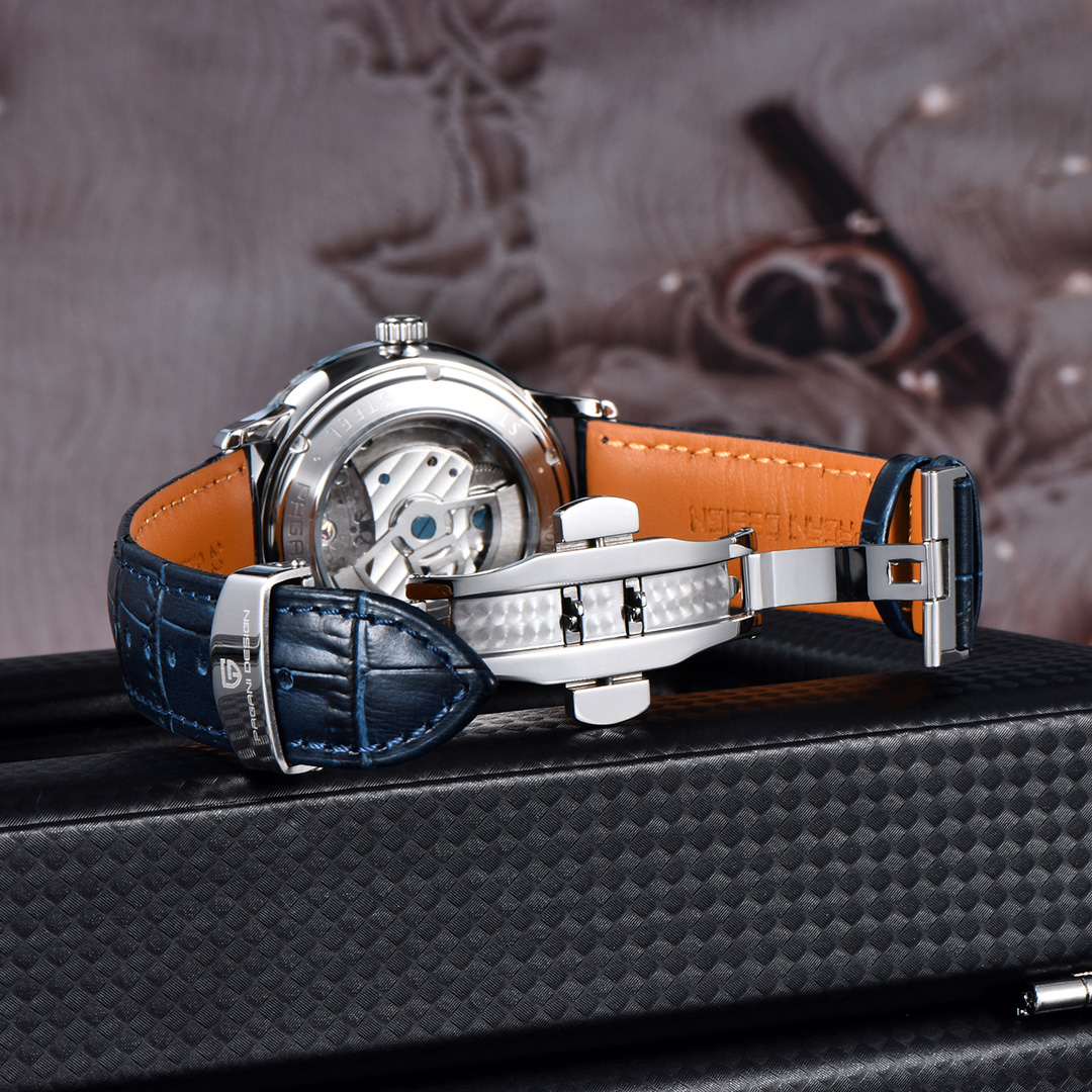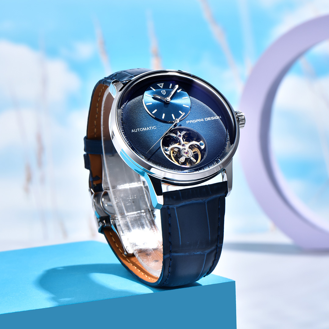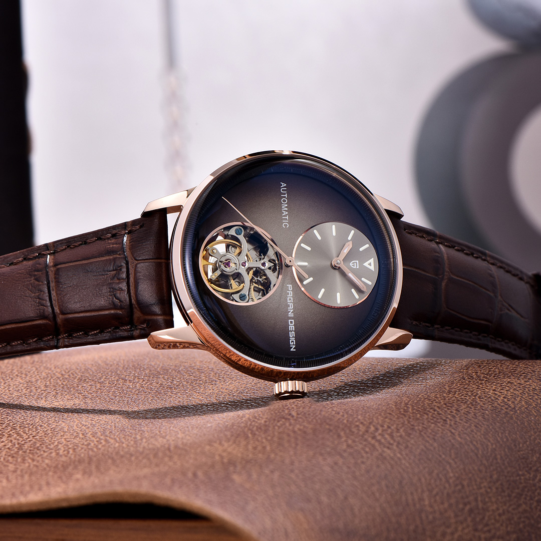 PAGANI DESIGN PD-1796 Men's Watch with Balance Wheel Automatic Mechanical Stainless Steel Wrist Watch for Men, Business Style, Leather Watch band