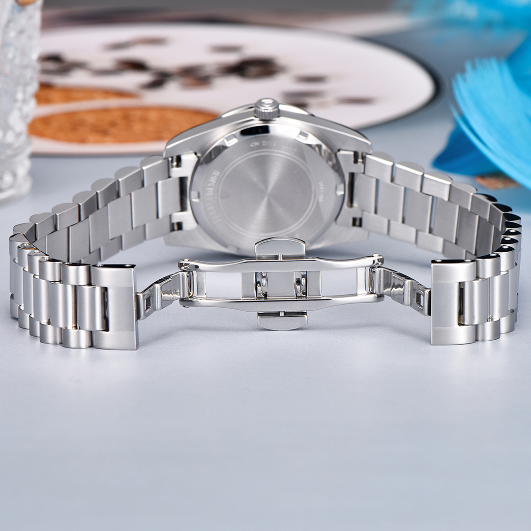 Material: stainless steel construction, diamond bezel, synthetic sapphire dial glass, and top Japanese TMI VH65 quartz movement